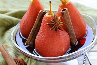 Recette bio : Poires bio pochées au vin rouge