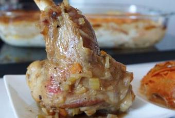 - Enfourner à 150°, cuire 1 h 30 en arrosant la viande toute les 30 mn.