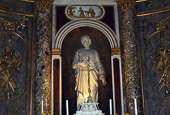 Voici une nouvelle contribution de Daniel IMPERATORI, que nous remercions pour ses talents d’observateur et de photographe. En l’église Saint-Etienne d’Ille-sur-Tet (Pyrénées-Orientales) se trouve un retable construit en 1855 en l’honneur de saint Joseph. La statue du saint, en marbre blanc, est accompagnée de deux panneaux latéraux sculptés.