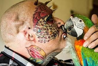 Donc pour en revenir à Ted, il adore tellement ces bêtes qu'il n'a rien trouvé de moins que de faire des tatouages colorés, des piercing et des implants sous-cutanés partout sur le corps pour leur ressembler, au nombre de cent onze au total ... ça commence à faire lourd.