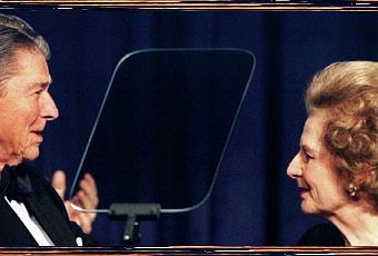 Ronald Reagan et Margaret Thatcher, le 3 février 1994 à Washington. REUTERS/Mike Teller.