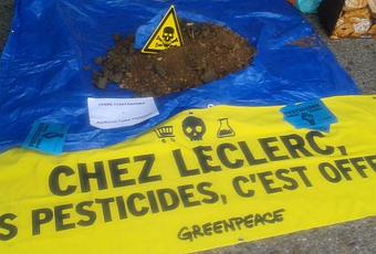 "Chez Leclerc, les pesticides sont offerts". C'est le message qu'entendait faire passer ce matin Greenpeace dont les militants ont mené ce matin des actions coup-de-poing dans des centres Édouard-Leclerc, un peu partout en France.