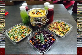 Salade avec riz, carottes, romarin, chou rouge, graines de lin