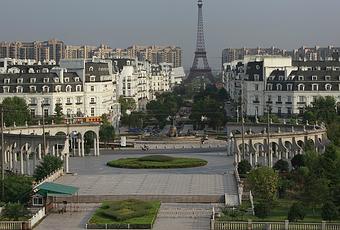 C'est à deux heures de Shanghai et c'est un petite ville bâtie de toutes pièces sur le style de la capitale française, avec une réplique de la Tour Eiffel (108 m - deuxième plus grosse réplique au monde après celle de Las Vegas), de l'Arc de Triomphe, d'une fontaine de Versailles, des immeubles haussmaniens, des avenues fleuries et des cafés avec terrasses.