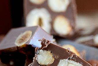 Hier on passait à l'heure d'hiver, on avance ou on recule les aiguilles de la montre… je crois que je ne m'y ferai jamais. Toujours est-il… ce que j'ai retenu c'est que l'on gangait une heure de notre temps précieux, alors pourquoi pas une heure de plus dans la cuisine ! Quelques grammes de chocolat plus tard, voici de belles barres choco-noisettes, un peu comme celles que j'allais acheter en Suisse quand j'étais enfant… un poil régressif, tendre et croquant, on se régale.