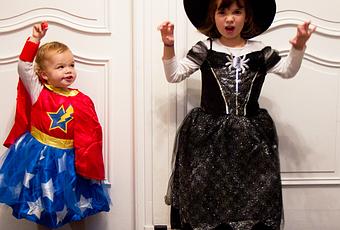 J’ai choisi pour ma part le déguisement de sorcière pour Louise, et celui de super girl héros pour Jeanne.