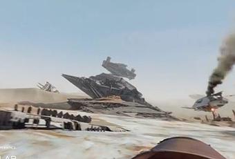 video immersive qui nous plonge sur la planète Jakku aux commande d'un vaisseau qui longe l'épave du célèbre Devastator, le plus grand vaisseau que possédait l'Empire avant la victoire des forces rebelles dans Le Retour du Jedi.