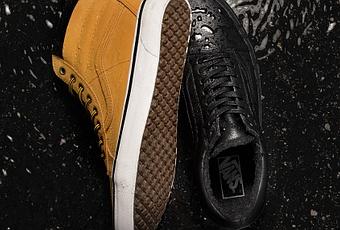Combinant des tiges dotées de la technologie Scotchgard® avec des doublures chaudes et une épaisseur destinée à retenir la chaleur, la collection Vans Weatherized " Mountain Edition " à dévoilé pour cette nouvelle saison Automne-Hiver 2015 une nouvelle gamme de chaussures Classic, comprenant les modèles Old Skool MTE et Sk8-Hi MTE, montés sur des semelles à crampons à caoutchouc vulcanisé.