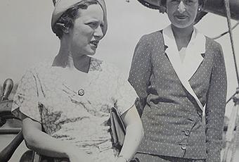 Photo : Régine van den Broek d'Obrenan (à droite) et sa cousine, Monique de Ganay (à gauche) sur la Korrigane en 1935 photo © Etienne de Ganay.