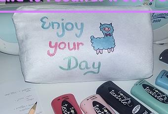 Du coup, je me dis qu'avec un peu de peinture textile et de patience, je devrais bien arriver à décorer une petite trousse maison. Hop, hop, hop. Une feuille de papier, un crayon, je dessine mon brouillon et puis je me lance dans la couture de la fameuse trousse.