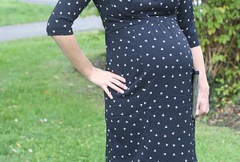 Celle que je porte aujourd’hui est vraiment canon, je la trouve parfaitement taillé. Mon ventre, malgré une fin de grossesse qui approche (un ventre donc très très présent), rentre parfaitement dans la robe, je ne suis pas du tout serrée dedans.