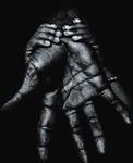 «Je suis un peintre dans le noir», dit Ennadre, dont la palette est riche de cette anti-couleur qu’il utilise pour délimiter ces sujets et structurer l’image avec des lignes et des surfaces. Le noir, c’est « l’autre », la place de l’autre, il permet à notre vision de se repérer, d’apprécier la diversité des variations des densités entre les valeurs grises et blanches. Ce noir n’est pas funèbre, il éclaire, donne le relief, le modelé et la profondeur grâce à un savant contre point, entre le clair et l’obscur, entre les lumières et les ombres.