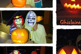 Un gros potiron (donnée par mon gentil voisin) pour faire une tête méchante et éclairée avec une bougie à l'intérieur ...