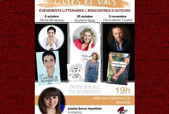 Autres invités, le 20 octobre dernier, Amélie Handfield Boivin a reçu Guylaine Guay (l’art de se réinventer). Le 3 novembre prochain ça sera Denis-Martin Chabot (C’était le village).