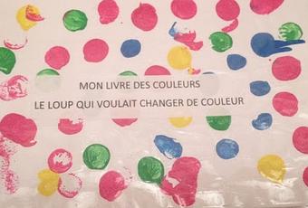 J'ai décidé de faire un livre sur les couleurs après en avoir vu un sur Pinterest, plus précisément de travailler sur le livre "Le loup qui voulait changer de couleurs" (je vous en parle ici) Ça demande beaucoup de temps mais c'est très simple à faire, j'ai proposé à Lola de peindre avec différents objets pour chaque couleurs différentes (brosse à dent, pinceau, un rouleau de papier toilette, les pattes d'un dinosaure, un coton tige et une balle) c'est une chose qu'évidemment Lola a adoré faire. C'est ma super sœur qui a fait chaque feuille qui se trouve en face des peintures et je la remercie (si vous connaissez le livre vous aurez reconnu les textes qui se trouvent dans le livre, sur chaque feuille est notée la technique utilisée pour peindre) J'ai plastifié chaque feuille pour ne pas que les feuilles s’abîme après quelques manipulations, à la fin du livre, j'ai imprimé une "comptine" sur le loup et un Loup avec les parties du visage, ventre et queue découpés pour que l'on puisse voir le Loup avec les différentes couleurs, Lola adore faire voyager le Loup au travers du livre et citer les différentes couleurs à sa sœur