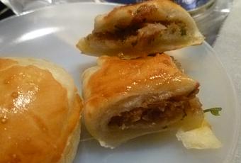 J’ai commencé par les faire en rond comme Laurent MARIOTTE préconise, mais j’ai trouvé que le goût du pâté ne dominait pas. Je l’ai roulé dans la pâte feuilletée et c’est nettement mieux…. A vous de me dire…………. !!!!