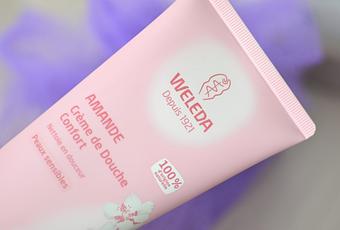 Et parfois le hasard fait bien les choses : alors que nous avions dépassé le terme de ma grossesse, cinq à dix vergetures marbraient davantage mon ventre chaque jour qui passait ( et c'est pas faute d'avoir hydraté et nourri à la truelle...si vous ne me croyez pas, un rapide tour sur mon blog devrait suffire ! ) et ma peau devenait ultra sèche. J'avais besoin d'une grande douceur sous la douche lors de mes contorsions ablutions quotidiennes. Aussi, lorsque j'ai remporté un concours sur le site de Sapphire, j'ai sauté de joie : j'allais pouvoir tester la nouvelle crème de douche à l'amande de WELEDA !
