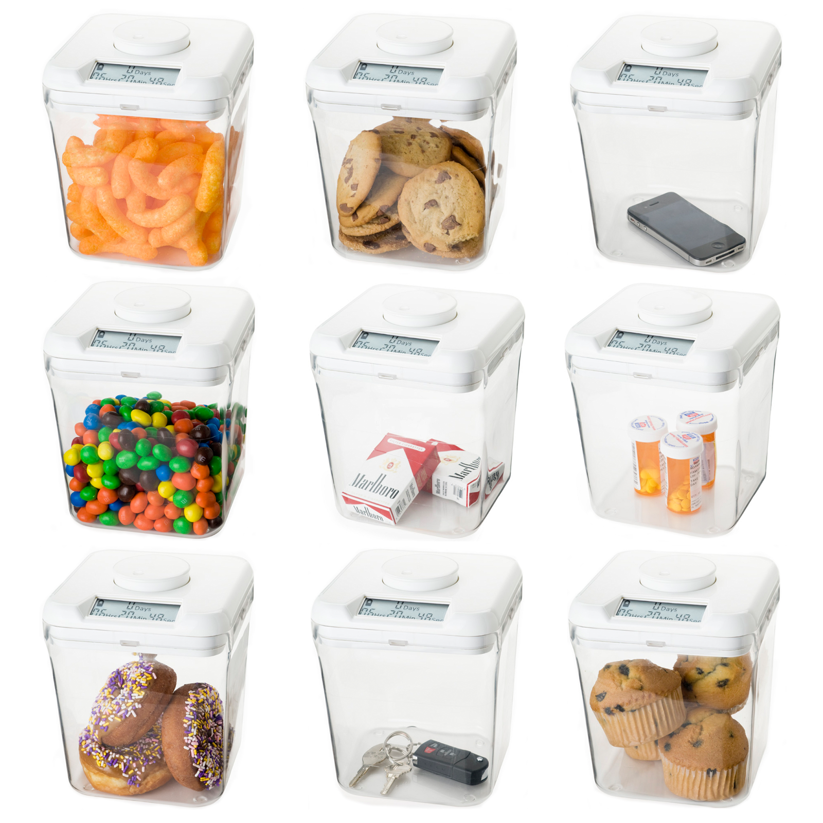 Le Kitchen Safe a été conçu pour les aliments, mais il peut également servir pour sécuriser les objets confisqués aux enfants comme un iPod, un jouet, ou encore, empêcher quelqu'un de toucher à son cellulaire jusqu'à la fin du repas! (in-gé-nieux!) Même ceux qui veulent en finir avec le tabac peuvent s'en servir.