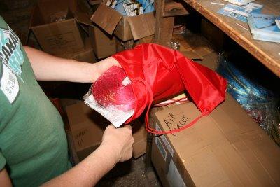 Après avoir plié 500 notices et roulé 500 sangles en guise d'échauffement, il s'attaque à l'ensachage...