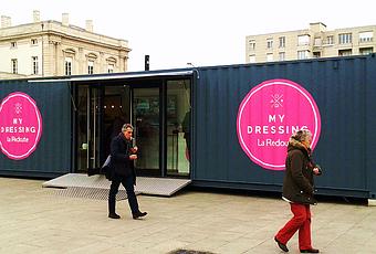 L' enseigne française de prêt-à-porter a placé un container baptisée My Dressing auquel les visiteurs pouvaient y accéder. Dans son intérieur il y avait des photos des produits de l' enseigne et une hôtesse offrait un bracelet connecté et avec un USB à chaque visiteur. Dans l'USB le visiteur pouvait télécharger le catalogue complet des produits de la marque et à travers la connexion du bracelet l' enseigne pouvait registrer toutes les données de la personne. Ensuite, ce bracelet servait aussi au consommateur d'optimiser son shopping dans le container, à travers le scanner du bracelet le consommateur faisait grossir son pannier virtuel.