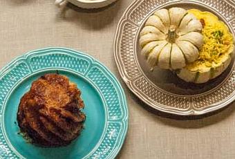 Sortez les courges du four. Disposez le riz dans la courge. Au moment de servir, passez les courges farcies 5 minutes au four pour qu’elles soient bien chaudes.