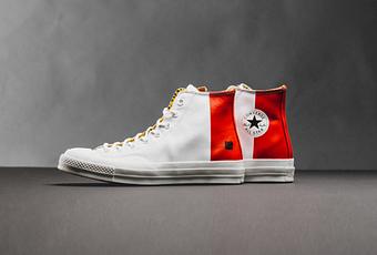 Undefeated est décidément très présent ces derniers temps avec différentes collaborations toutes aussi réussies les unes que les autres, les voici à présent aux côtés de Converse. C’est la Chuck Tailor All Star 70, l’incontournable, qui bénéficie du traitement de la marque de streetwear de L.A, présentées en deux versions arborant chacune un upper full cuir. La première est blanche avec la partie du talon en rouge vif la seconde est noir avec cette même particularité sur l’arrière mais en ton sur ton. Toutes deux arborent sur le bas du talon côté extérieur le logo Udftd et intérieur le logo Converse All Star plus le co-branding sur la languette, elles ont également en commun un intérieur jaune tacheté de noir qui leur donne un petit look sauvage, et une semelle full white.
