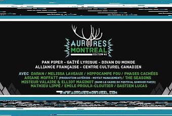 On retrouvera pour les représentants du Canada : Daran, Mathieu Lippé, Emile Proulx-Cloutier, Ariane Moffatt, Mélissa Laveaux, The Seasons, Misteur Valaire et notre cher Elliot Maginot. Du côté français : Bastien Lucas, Hippocampe Fou et Phases Cachées. Aurores Montréal se déroulera du 7 au 12 décembre, et toutes les informations sont à retrouver sur leur site officiel.