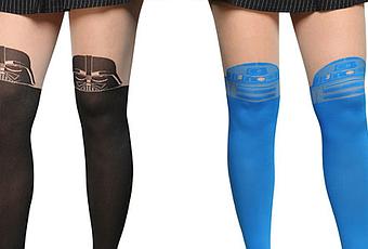 Vous aviez bien aimé cette collection de collants aux silhouettes célèbres dont Batman, Alice au pays des merveilles et le Roi Lion ? Voici venir les collants de Dark Vador et R2-D2. Proposés par le site ThinkGeek, les collants Vador (80% nylon / 20% spandex) et R2-D2 (65% polyester / 23% nylon / 12% spandex) sont au prix de 14,50$.