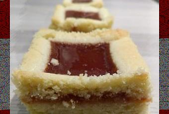 De délicieux sablés parfumés à l'abricot, coupés en petits carrés et à déguster avec modération ! Il vaut mieux utiliser une confiture peu sucrée et acidulée, sinon l'ensemble risque d'être sucré.