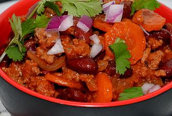 Pour ce weekend, je vous propose un chili con carne. Un plat de circonstance, même si la météo joue au yoyo avec nous. Le mercure monte et descend selon ses envies.J'ai même des framboises qui poussent encore sur mon balcon alors qu'on pensait l'hiver déjà là.Le chili con carne, un plat roboratif et facile à préparer, signifie chili à la viande.Son origine est difficile à préciser mais il est certain que ce plat est américain et l'utilisation du piment servait à cacher le goût d'une viande pas toujours très fraîche.Au départ, on mélangeait de la viande de boeuf avec de l'ail, des oignons, de l'origan et des piments.Depuis, on a apporté plusieurs variantes à ce plat : des tomates, des haricots rouges etc.Personnellement, j'ai rajouté des carottes.Avec un coulis de tomates prêt et des haricots rouges en boite, ce plat , en plus d'être facile, est très rapide à faire.Dans le mélange d'épices pour Chili con carne, il y a du piment fort , du paprika , de l'ail, du cumin, de l'origan et du clou de girofle. A chacun d'ajuster selon ses goûts.Servir le chili con carne avec du riz se fait de plus en plus, même si cela est considéré comme une hérésie par les puristes.Quoi qu'il en soit, avec ou sans riz, ce plat est très bon. La suite de la recette : cliquez ici
