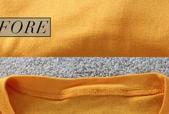 Vous préférez les t-shirts à col rond ou bien à col en V? Si vous préférez les cols en V mais que vous ne trouvez la plupart du temps que des cols ronds, il y a une solution, une petite opération à apporter sur le col pour le transformer en col en V, comme sur la photo !