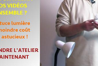 L’astuce est de prévoir aussi une lampe de bureau, avec une telle ampoule, plus petites, pour éclairer un objet, un produit, rapidement, et avoir une belle présentation vidéo ou photo.