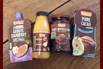 J'ai eu la chance de recevoir un échantillonnage de produits : - une gourde pomme-goyave-cranberry- un smoothie mangue-ananas-acérola- une confiture fraise-myrtille-cassis- des desserts poire-cacao