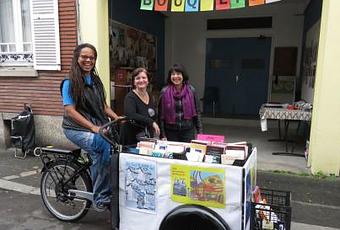 Montreuil, samedi. Le triporteur de l’association Bouq’lib fait circuler les livres dans tous les quartiers de la ville (LP/S.T.)