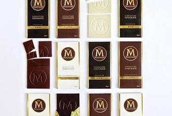 Les tablettes de chocolat Magnum sont délicieuses. On a l’impression de croquer le chocolat qui enrobe les fameuses glaces. Elles se déclinent en trois parfums : le véritable chocolat au lait du célèbre Magnum Classic, le chocolat noir Magnum aux éclats de fèves de cacao et le chocolat blanc Magnum à l’extrait naturel de vanille de Madagascar. Les tablettes de chocolat Magnum Signature sont disponibles en grand format de 90 g et dans un format snacking de 25 g. Elles se déclinent en trois parfums : le véritable chocolat au lait du célèbre Magnum Classic, le chocolat noir Magnum aux éclats de fèves de cacao et le chocolat blanc Magnum à l’extrait naturel de vanille de Madagascar. (Prix de vente : 1,89 € à 2,19 € les 90 g ; 1 € à 1,10 € les 20 g.)
