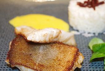 Pendant ce temps, dans une poêle, saisir à feu vif les filets de cabillaud recoupés en deux côté peaux.