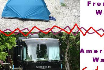 Aux States, tout est énorme, big, démesuré ! Même au camping... déjà la tente, c'est moyen utilisé, sûrement trop petit. Le camping-car, ils adorent, mais rien à voir avec le format européen : ce sont des énormes bus chez eux !!