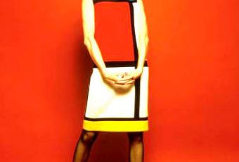 Et à part le coup du smoking féminin, et le bleu turquoise de la gamme Rive Gauche rien ne me venait. Lorsque mais c'est bien sûr! J'avais été marquée par la robe Mondrian !
