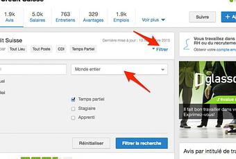 La première des choses intéressantes avec Glassdoor, c’est que vous pouvez consulter les avis que les employés donnent sur les entreprises suisses dans lesquelles ils travaillent ou ont travaillé. Il est également bien sûr possible d’en donner si vous avez vous même travaillé (ou travaillez) dans l’entreprise en question. Si on regarde par exemple les avis de Crédit Suisse, le site affiche fièrement plusieurs milliers de commentaires. Attention, ce sont les commentaires pour le monde entier, il faut donc filtrer ceci. Du coup, pour la Suisse, on trouve tout de même plus de 160 commentaires.
