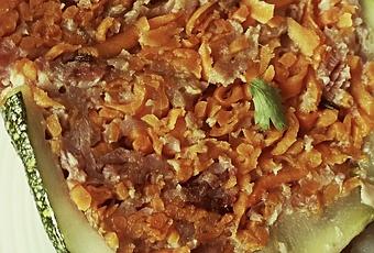 Avec vos mains, mélangez la farce et remplissez vos 2 courgettes.