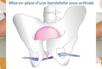 Cette option chirurgicale consiste à positionner sous l’urètre une petite bandelette qui va soutenirl’urètre lors de l’effort afin d’empêcher les fuites. Il existe différents dispositifs et systèmes de pose : soit l’insertion de la bandelette par voie rétro-pubienne (derrière l’os pubien sortir via l’abdomen) soit par voie trans-obturatrice (TOT) d’un côté à l’autre en sortant par l’aine.