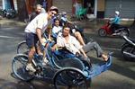 3/ Rouler: utiliser des Cyclo-pousse et mettre les chauffeurs sur les sièges. Et maintenant poussez! Voilà c'est casse-gueule, c'est ultra dangereux mais vous serez prèt pour le triathlon, puisqu'ils vous auront bien roulés en faisant quand même payer la course .