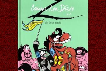Zorro est le héros de mon enfance. Je me rappelle des bons moments passés avec mes parents à regarder les aventures du célèbre justicier masqué. J’avais donc jaugé avec curiosité l’apparition du premier tome d’une nouvelle série intitulée « Z comme don Diego ». La découverte s’était avérée drôle et sympathique. C’est donc en confiance que je me suis offert l’opus suivant paru au mois d’octobre. Il s’intitule « La loi du marché » et nous présente un Zorro bardé de sponsors tel un pilote de Formule 1. Son père, le sergent Garcia, la señorita Sexoualidad ou encore Bernardo l’accompagnent au second plan.