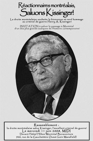 La droite montréalaise souhaite la bienvenue et rend hommage au criminel de guerre Henry A. Kissinger!