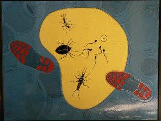 "Au nom du père du fils et de la haine"Samedi soir, invité à un vernissage de peinture, quelques bises à quelques unes qui me manquent, les mains serrées de quelques uns. Une visite de l'expo entrecoupée de saluts, de sourires, de comment allez vous ? vous peignez toujours , avec des petites bêtes ?. Non maintenant je fais des grosses comme vous !(c'était une pensée)