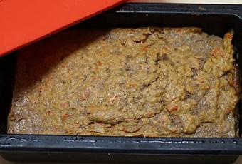 9/ Verser la préparation dans la terrine en silicone et lisser le dessus .