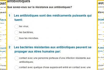 14 questions sur l’utilisation et la connaissance des antibiotiques à 10.000 répondants de 12 pays (l’Afrique du Sud, la Barbade, la Chine, l’Égypte, la Fédération de Russie, l’Inde, l’Indonésie, le Mexique, le Nigéria, la Serbie, le Soudan et le Viet Nam) révèlent les principales lacunes dans la compréhension et les idées fausses sur l’antibiorésistance. Ainsi, si 64% des répondants déclarent savoir que la résistance aux antibiotiques peut les concerner eux-mêmes et/ou leurs familles, les messages de base ne sont pas encore passés :