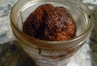 Pour obtenir un dessin original : répartir dans les bocaux une cuillerée de pâte blanche, par-dessus déposer une cuillerée de pâte chocolatée et ainsi de suite jusqu'à épuisement. Remplir les bocaux jusqu'à la moitié, ne pas dépasser les 2/3 car le gâteau va gonfler. Les poser sur le lèche-frite du four et enfourner pour 45 mn à 180°. Vérifier la cuisson avec une brochette. Si elle ressort sèche : le gâteau est cuit.