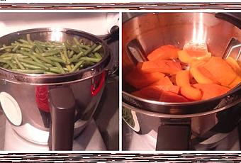 En plus du bol inox chauffant, le Cook Expert possède 3 cuves de taille différentes avec 2 couteaux et des disques pour couper en rondelles ou râper. J'ai testé les carottes râpées et les oignons et carottes coupés en rondelles.
