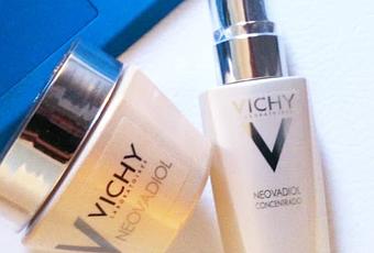 Un des avantages à être blogueuse, c'est que je reçois beaucoup de produits et des fois, ma mère en reçoit, car ce sont des soins parfois trop avancé pour moi. C'est le cas de Neovadiol de Vichy. Il y a quelques semaines, ma mère, qui adore les produits Vichy et également que je lui apporte des produits à tester Neovadiol... ou plutôt retesté Neovadiol (en 2013 c'était Magistral, aujourd'hui c'est compensatoire. en y ajoutant le sérum avant l'application de la crème. La dernière fois en 2013, ma mère n'avait pas été très impressionné par Neovadiol et lui avait donné la note de 3 sur 5 dans un article nommé Ma mère a testé Neovadiol et en début d'année elle a testé LIFTACTIV qu'elle a beaucoup aimé. Comme vous le savez, les Laboratoires Vichy se sont donné pour mission d'accompagner les femmes dans leur quotidien et c'est pourquoi la campagne Pour Moi C'est Vichy a été lancée cette année. Pour la première fois, Vichy et L'Oréal Recherche vont plus loin dans la connaissance des liens entre l'hormone de jeunesse et le vieillissement cutané. Vichy crée le premier Soin Compensatoire qui compense les effets de la ménopause sur la peau. Une formule qui " métamorphose " la peau des femmes dans toutes ses dimensions et lui redonne l'énergie de la jeunesse. Les Laboratoires Vichy présentent un nouveau soin capable de remplacer les bénéfices de la DHEA sur la peau 100% sans hormones